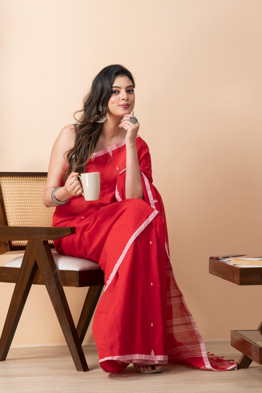Red Handloom Mark Dhaniakhali Mul Cotton Jamdani Saree