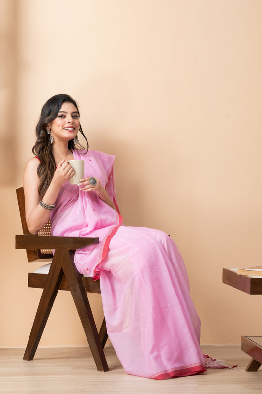 Pink Handloom Mark Pure Cotton Jamdani Saree
