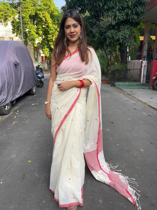 Off White Handloom Pure Cotton Heart Jamdani Saree