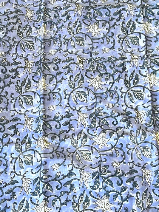 Blue Flowers Sanganeri Handblock Printed Mul Cotton Saree
