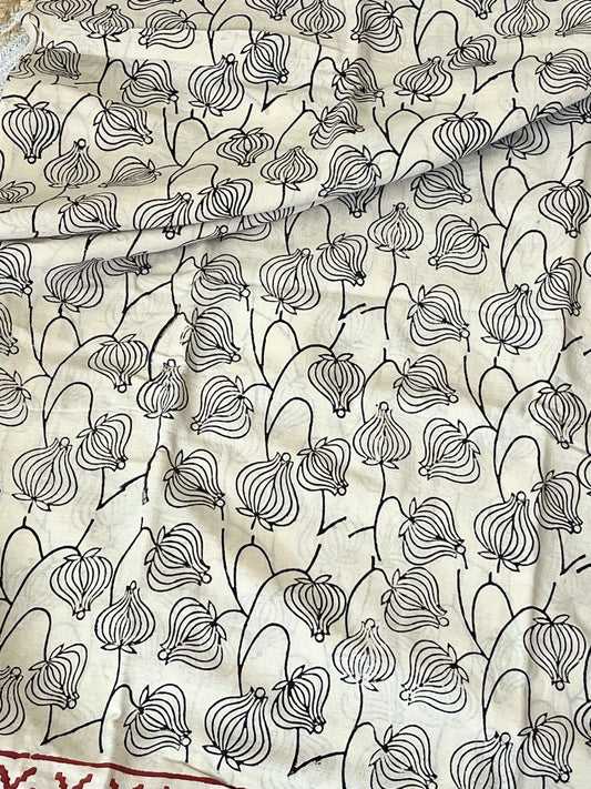 Beige Bagru Onion Handblock Printed Mul Cotton Saree