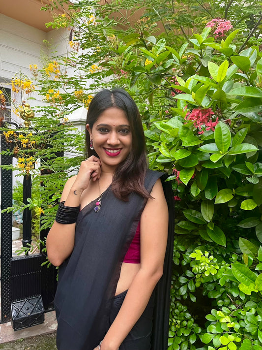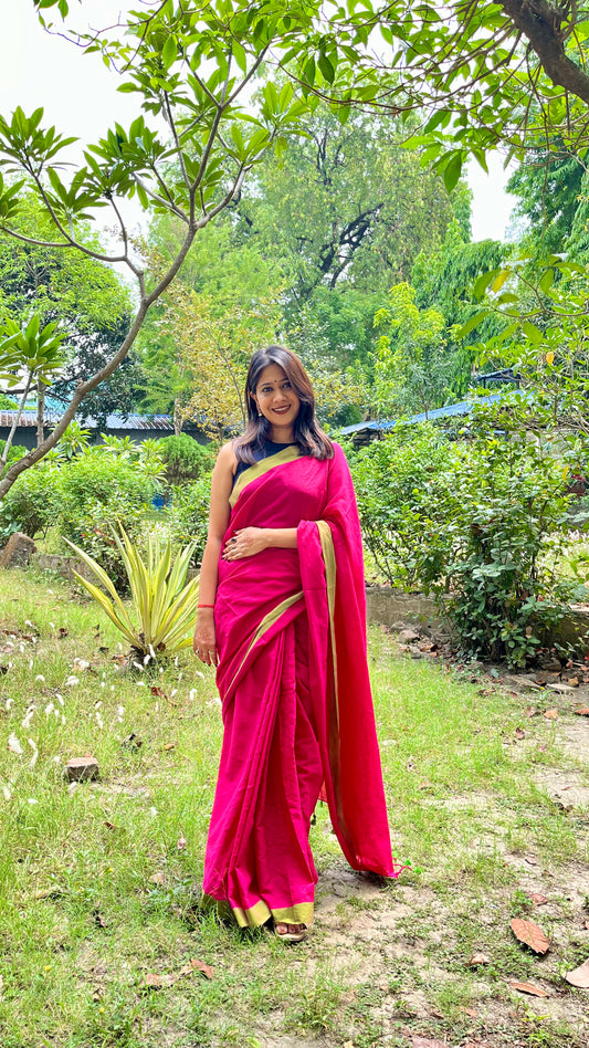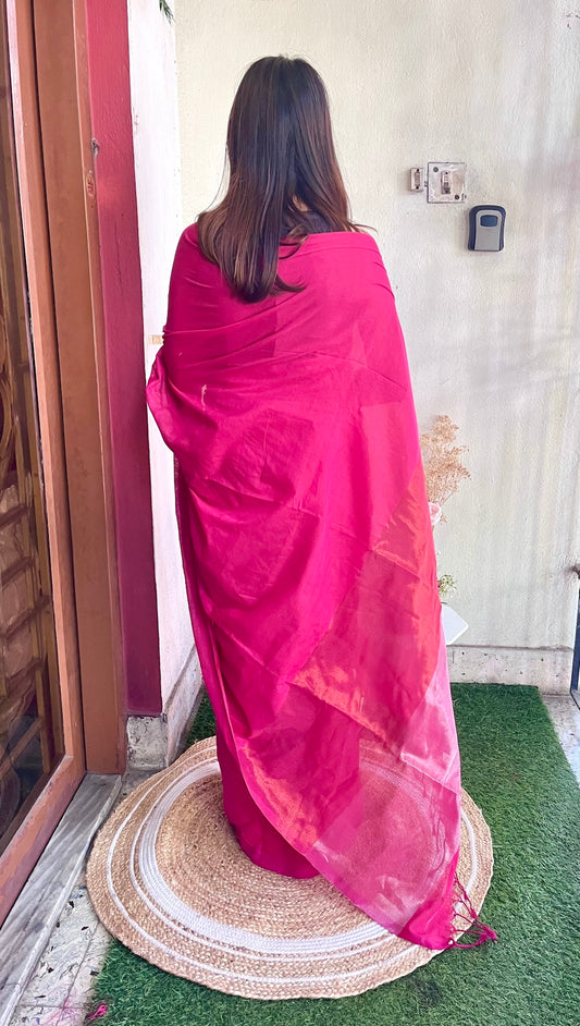 Pink Khadi Cotton with Silver & Copper Zari Palla
