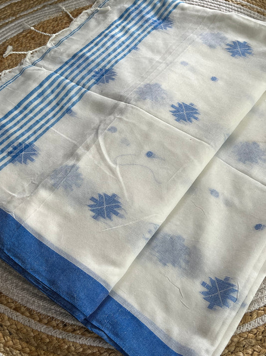 Off White Khadi Cotton Saree with Jamdani Weaving